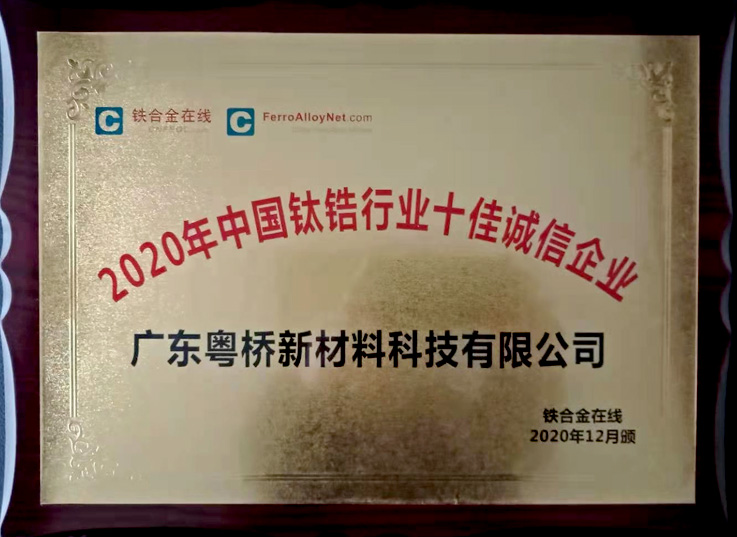 该评选活动自2020年9月24日开始,一直持续到11月30日结束。经过网友投票评选出的钛锆行业前20强企业,再经过行业专家对企业实力、企业产能、企业信誉、产品质量、持续发展能力、创新能力和社会责任等几方面的严格评审和综合评估,最终,广东粤桥新材料科技有限公司从参评的112家同行企业中以绝对优势获此荣誉!