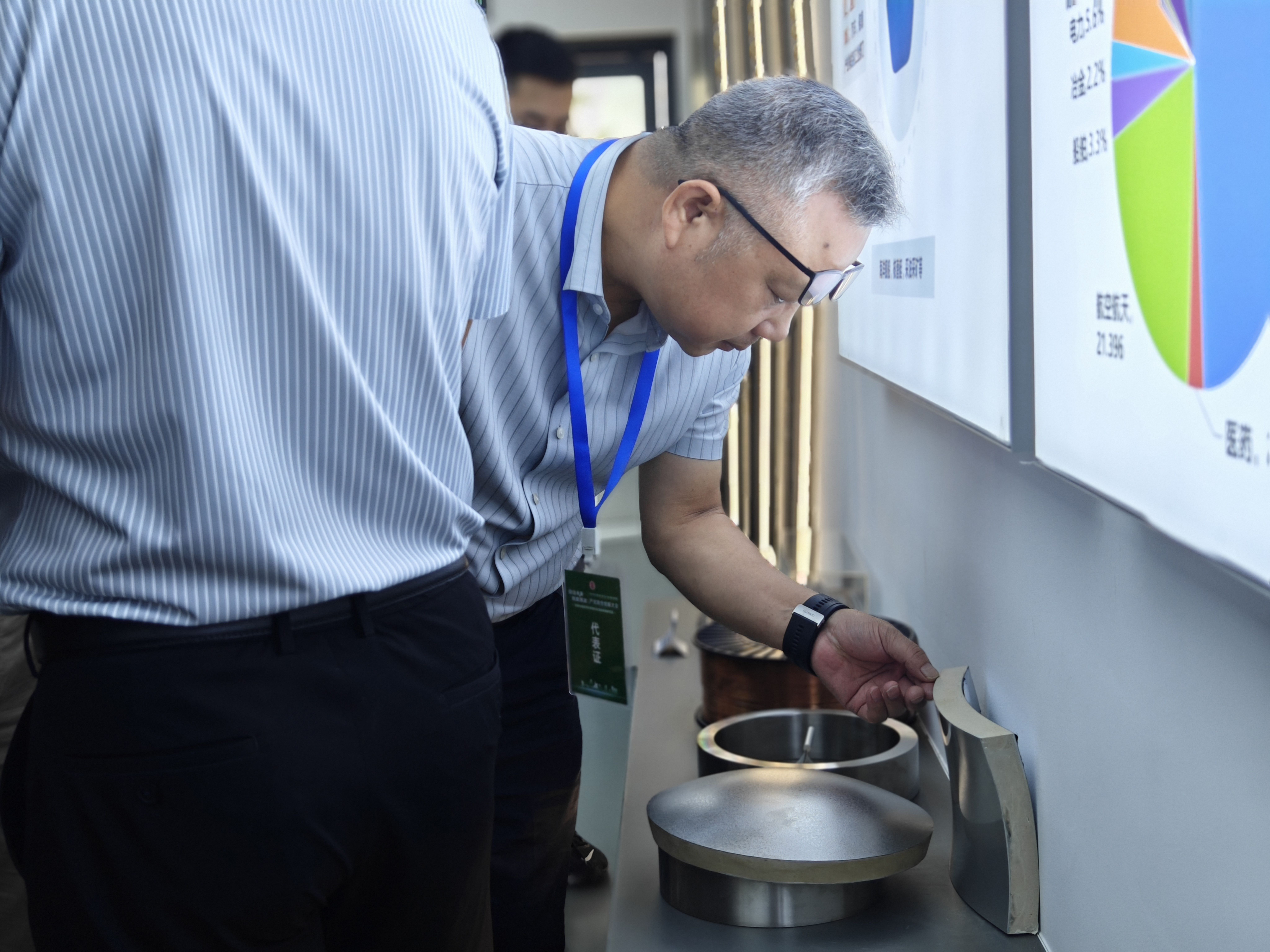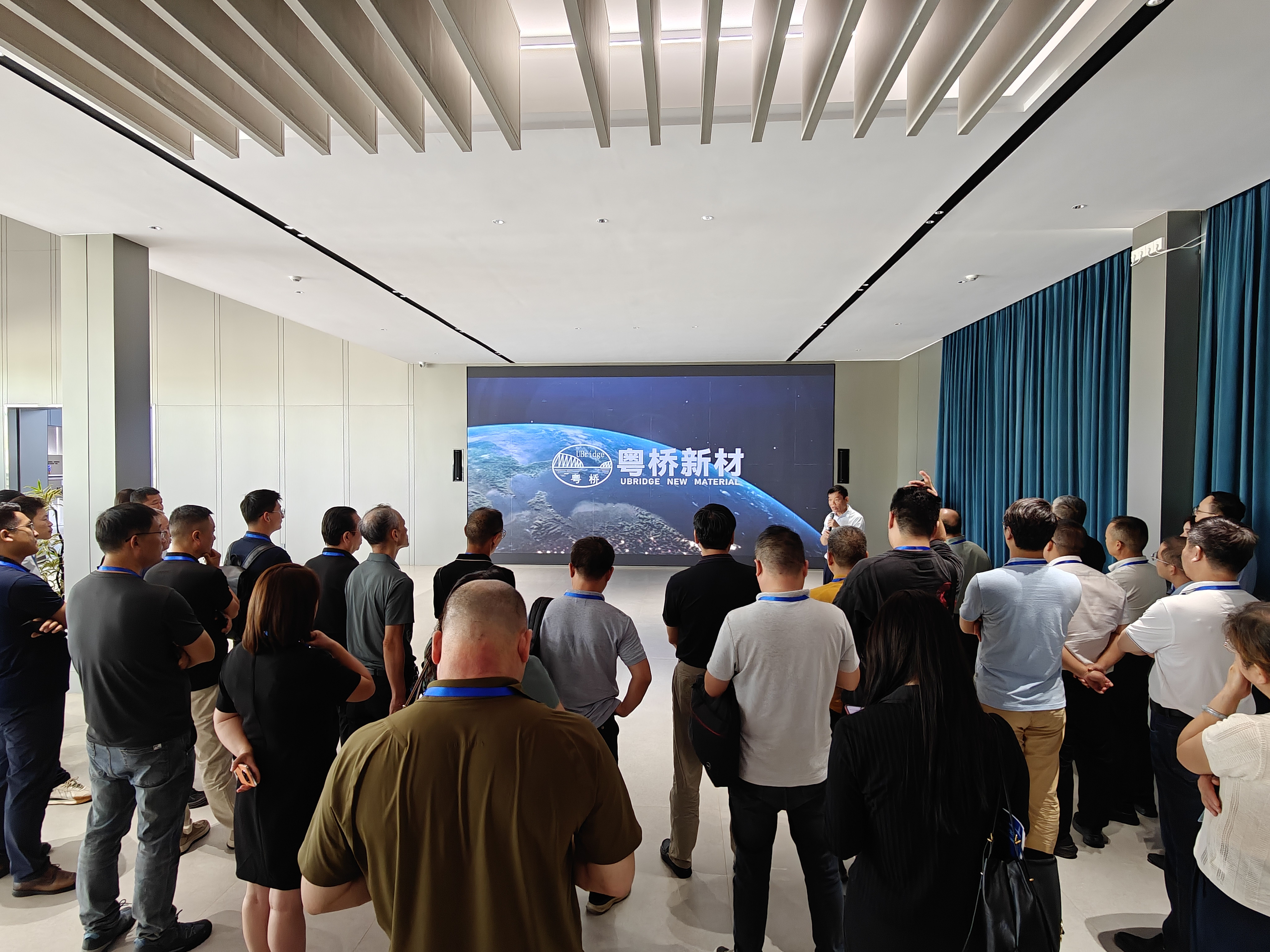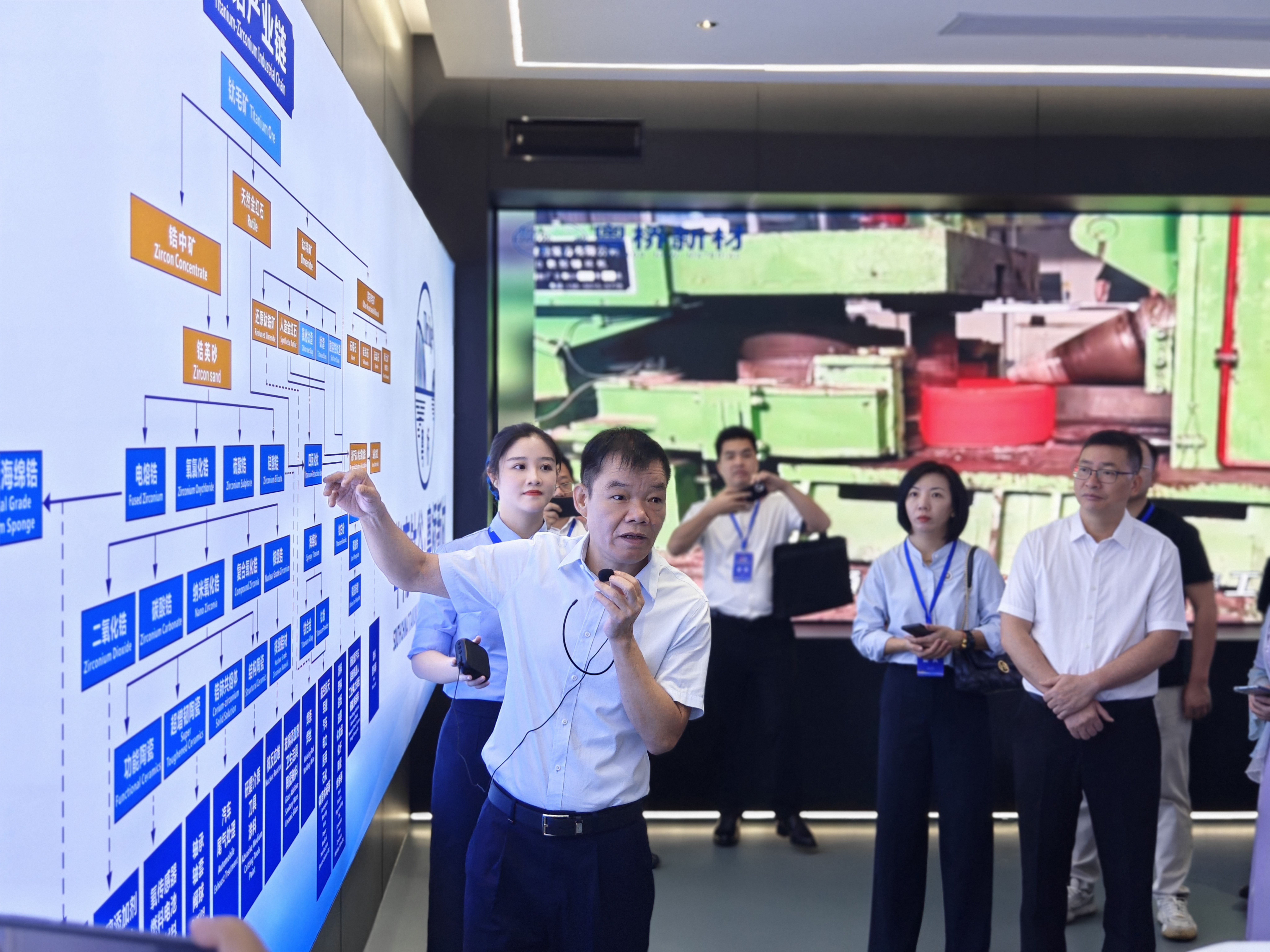 10月16日,参会代表来到本次活动的参观亮点——“华南钛谷・粤桥新材”展厅,实地考察了钛锆新材料技术工艺、核心产品及下游应用,并与粤桥新材董事长李吕华、副董事长李雨轩、总裁张枝成、副总裁李东和相关负责人进行了技术、工艺和产业链上下游合作的深入交流探讨。