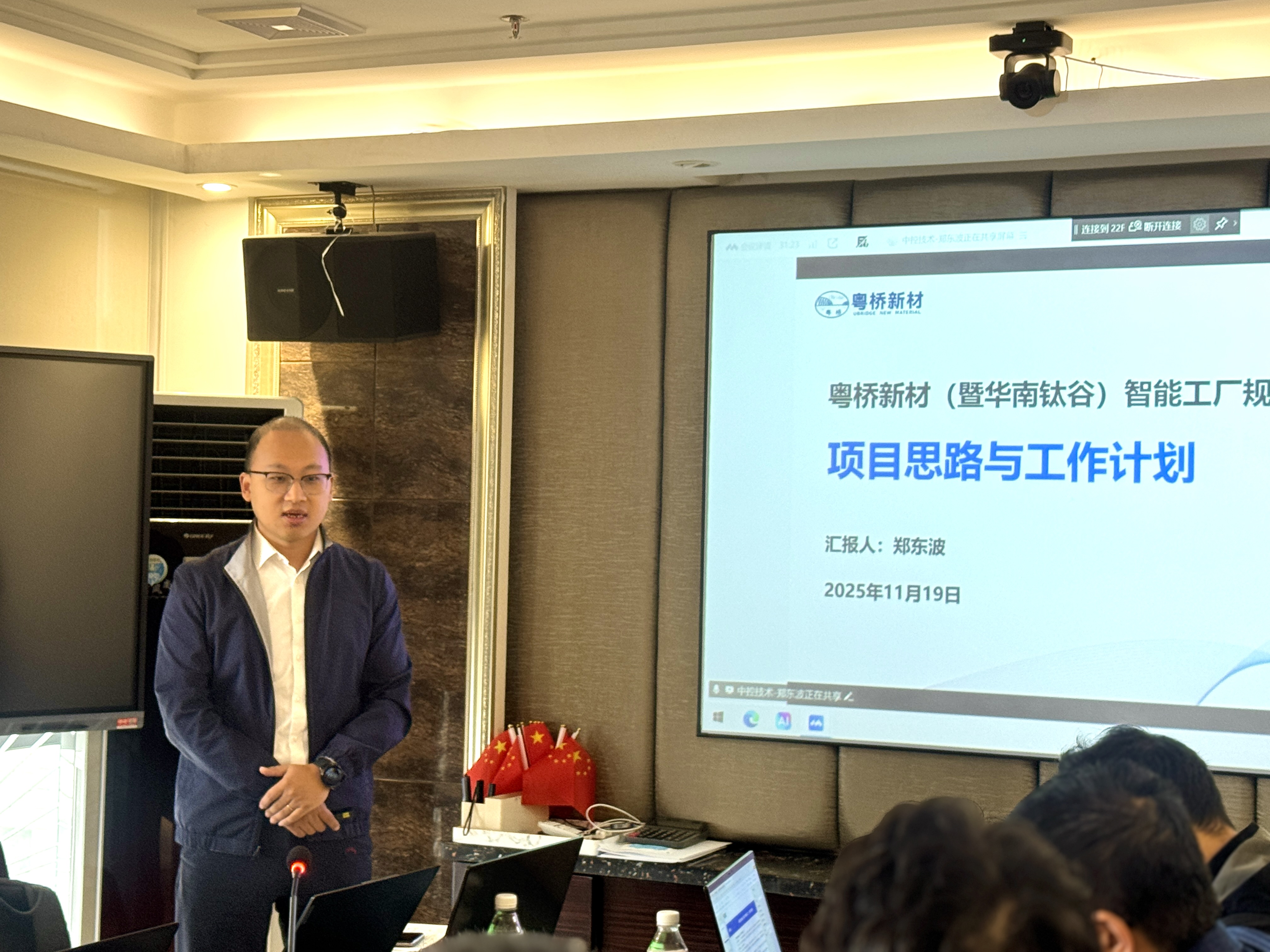 华南钛谷未来智能工厂建设,旨在以人工智能技术赋能数字化建设、全面提升企业效能。彰显了粤桥新材锚定智能制造赛道、实现钛锆产业高质量发展的坚定决心,为行业数智化变革注入强劲动力。启动会上副董事长李雨轩、副总裁冯肖霞、财务总监梁赛娟、总工程师王祥丁出席,副总裁李东主持,智能工厂建设领导小组及执行小组成员参加。